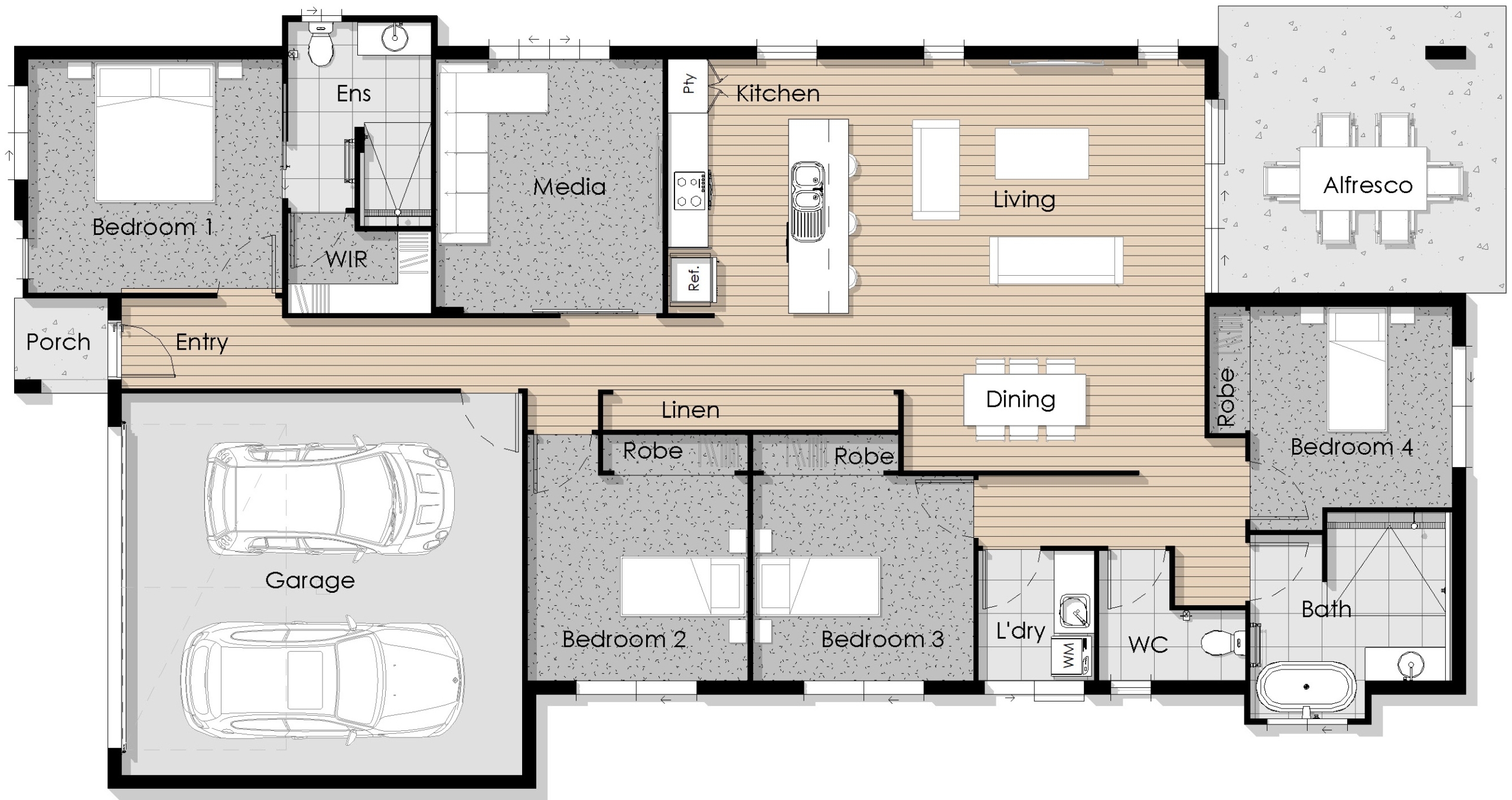 This family home has seperate living areas for those growing families needing the extra space. The Greenshoal was designed with an open planned living area using stacker doors to join the outdoor alfresco area. Great for extending the entertaining area. The main bedroom features a walk in robe and ensuite, and all other bedrooms have enclosed robes. Overall this is a great home to raise a family.